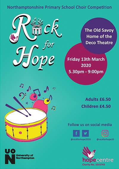 The Deco Main Auditorium Abington Square, Northampton, United KingdomRock for Hope is a primary schools choir competition in Northamptonshire, organised by University of Read more